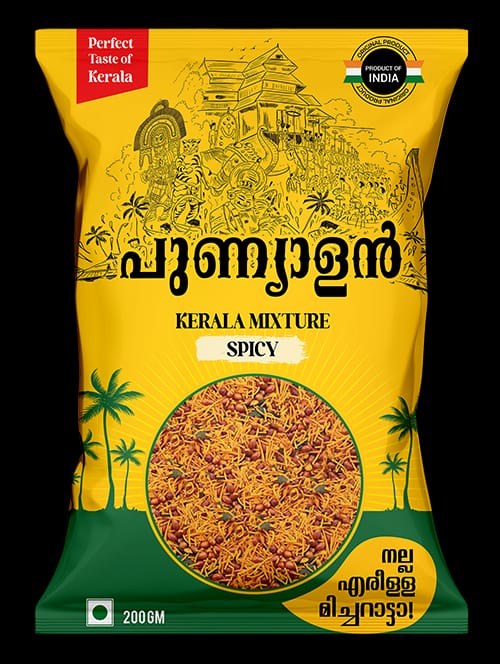 Punyalan Spicy Mixture is a traditional South Indian snack blend made for those who love bold, fiery flavors. It’s a crunchy combination of sev, boondi, roasted peanuts, curry leaves, and fried lentils – all tossed in a perfectly balanced spicy masala.